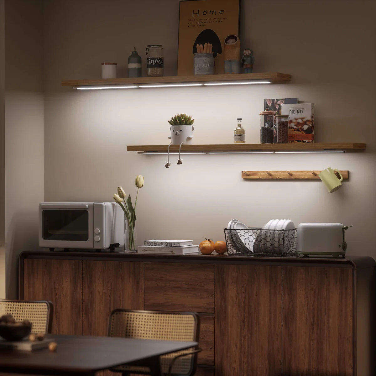 Secondly, each sensor not only has a different triggering mechanism but also operates differently, maximizing battery usage. For example, the Motion Sensor automatically turns on when someone approaches and turns off when they leave, ideal for hallways, staircases, and nighttime bathroom trips. The Hand Sensor stays on continuously after a hand gesture until another gesture turns it off, perfect for scenarios requiring sustained light, like kitchens and display cabinets. The Door Sensor lights up when a door is opened and turns off when closed, suitable for closets and storage cabinets.